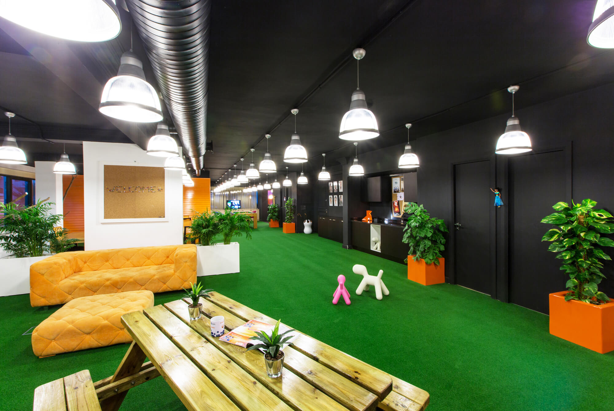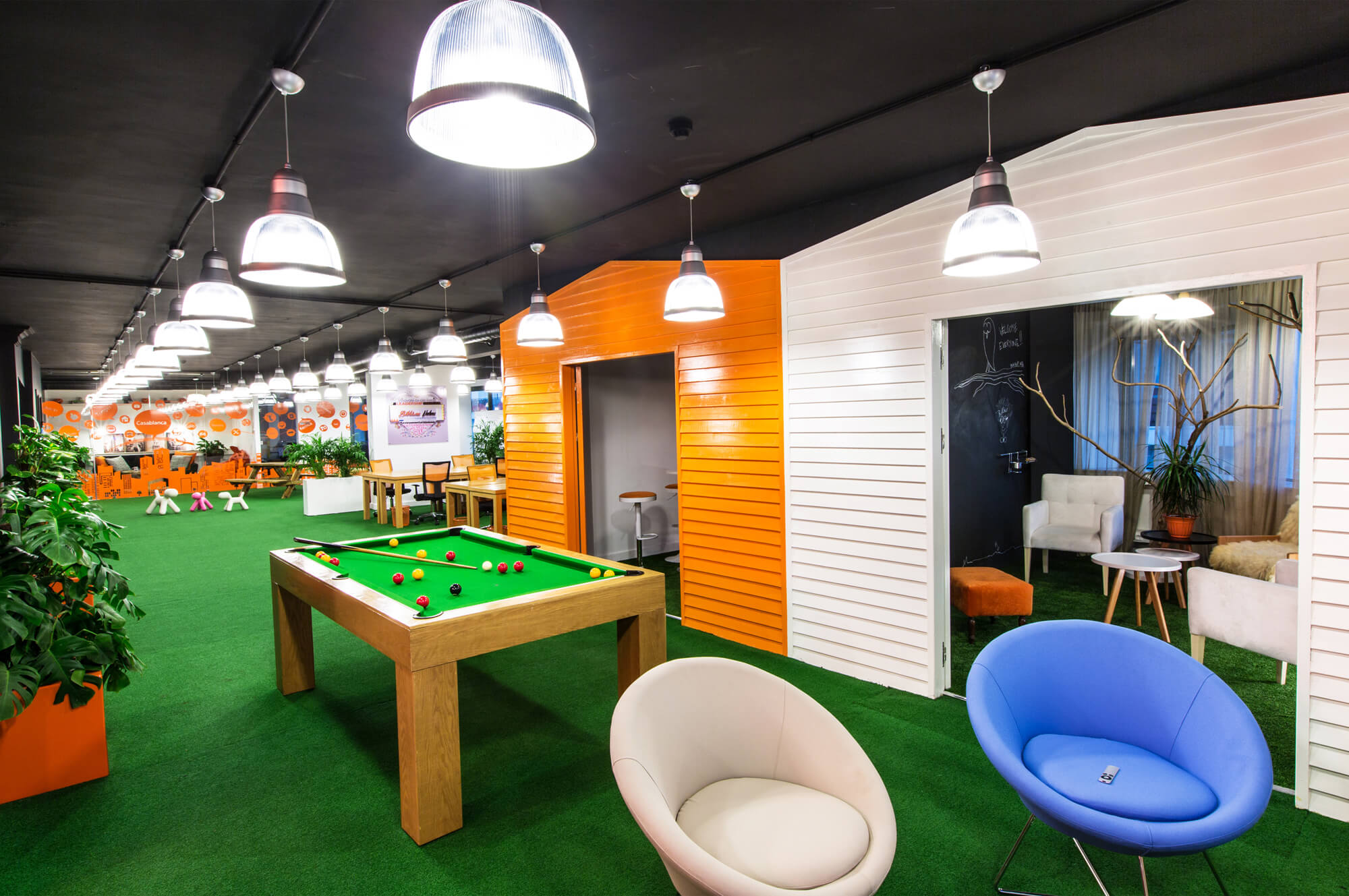 The office also includes a fun area with a pool table and a playstation set.