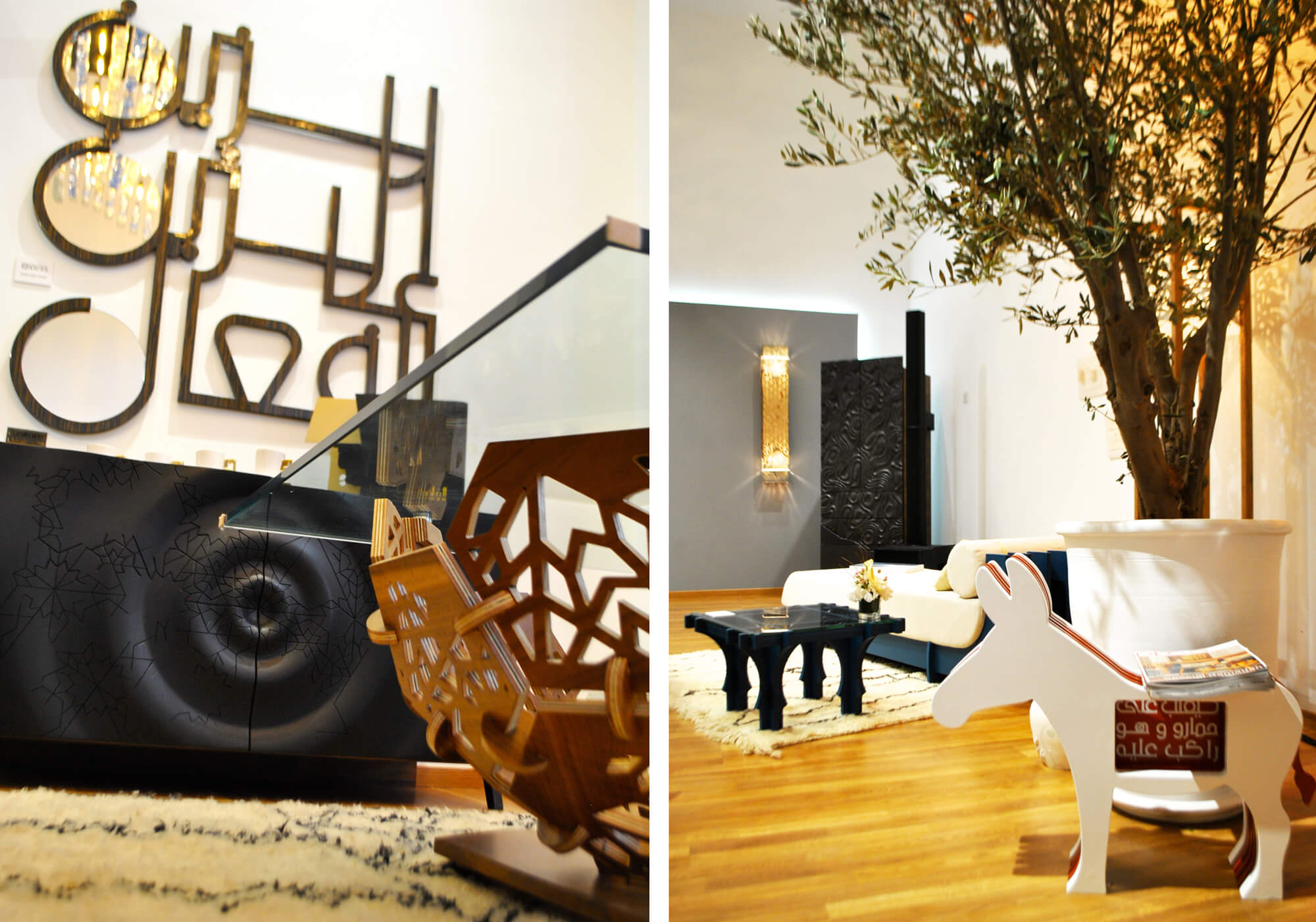 "Traces" collection, created by Kanza Ben Cherif, is a path through reinterpreted everyday objects, contemporary techniques and experimental procedures shape processed materials assembled with recycled parts. This project is based on the work of calligraphy and Arabic writing, giving form to Moroccan expressions and proverbs, through pieces mixing wood, marble, metal and a hint of humor.