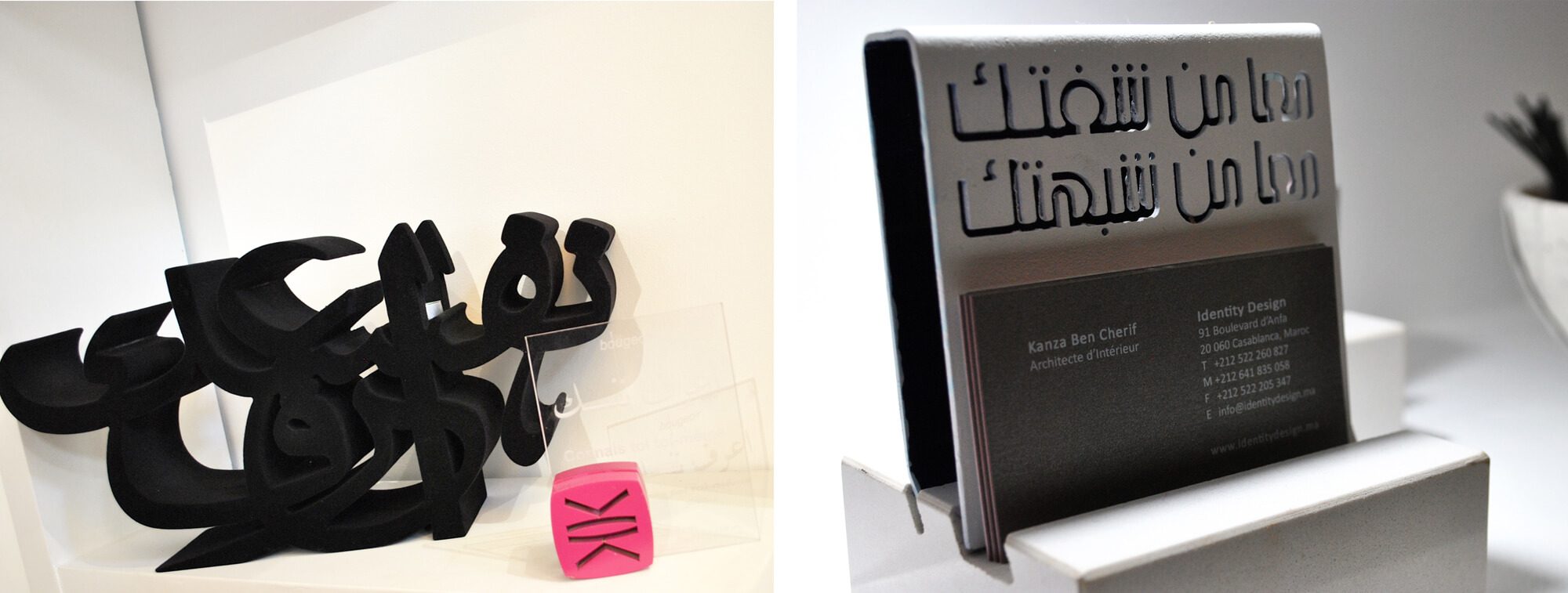 Driven by the passion of celebrating both the beauty of Arabic calligraphy and preserving the Moroccan oral heritage through functional design objects, Kanza believes in transcending the limits of pure design and what is simply ornamental to what is aesthetically functional.