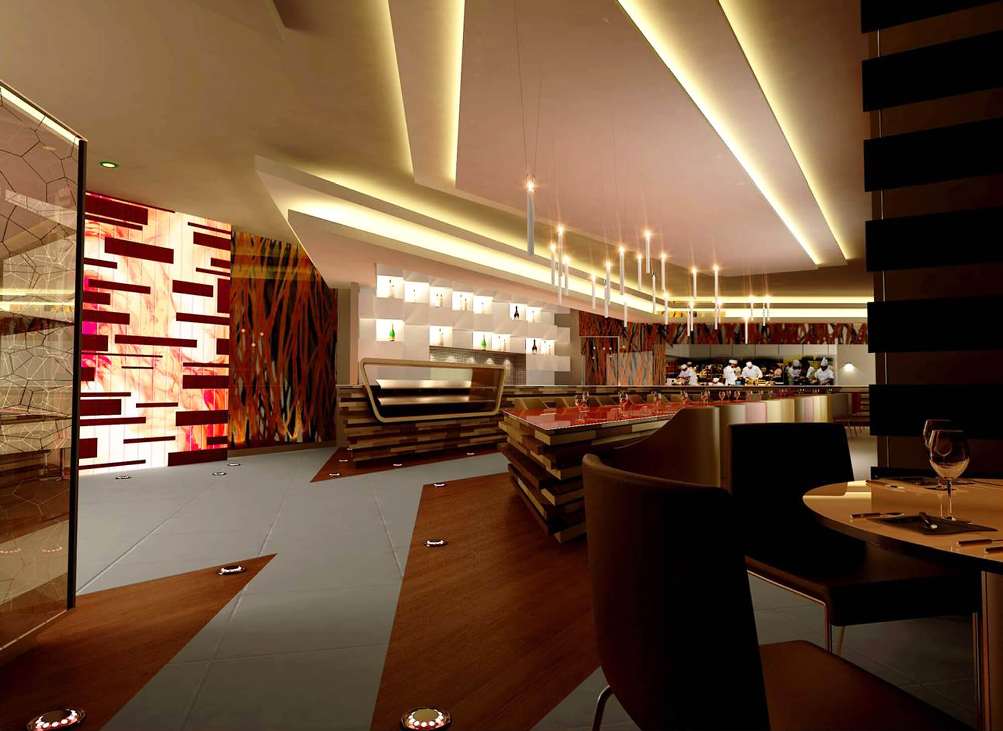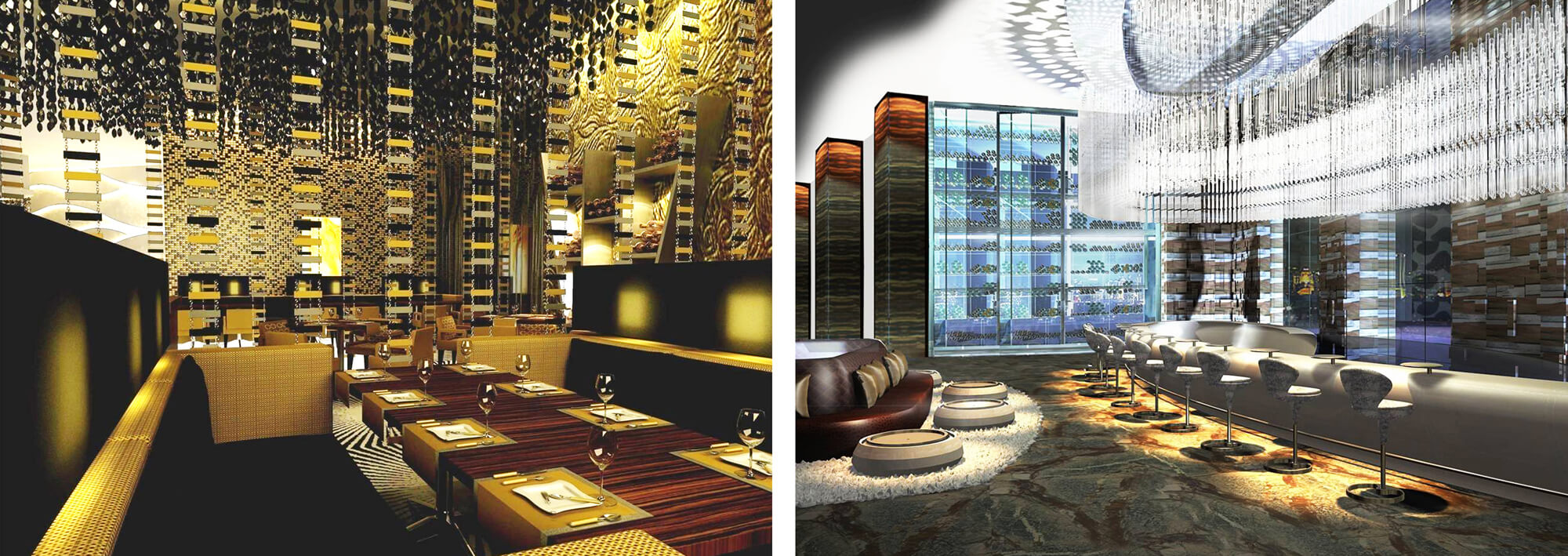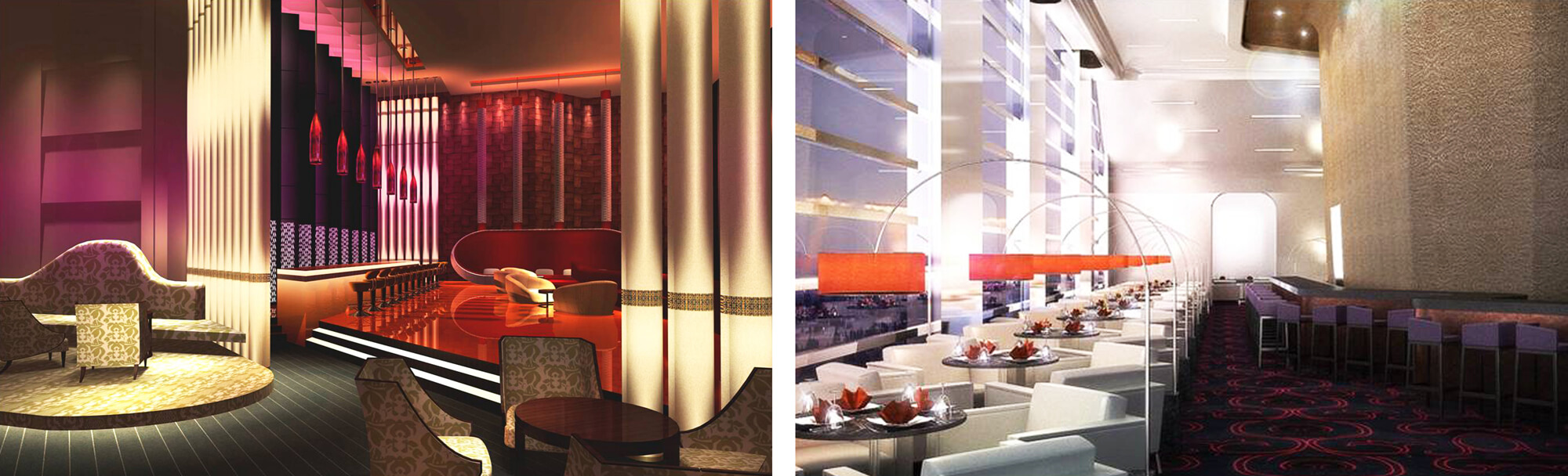 The interior design of the hotel is an interpretation of the architectural characteristics that accentuates dynamic volumes and spatial range offering a totally futuristic impression.